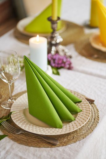 Serwetki flizelinowe wykonane z wysokogatunkowej bibuły airlaid wyróżniają się miękkością oraz strukturą przypominającą serwetki bawełniane. Dzięki swoim właściwościom umożliwiają tworzenie efektownych kompozycji, które stanowią elegancką dekorację stołu.