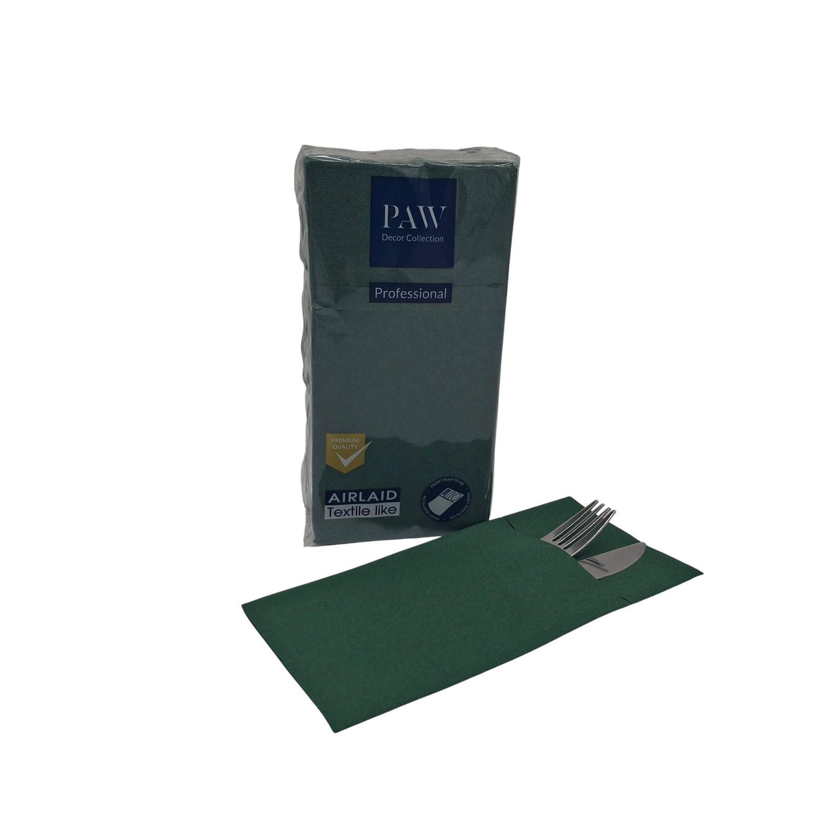 Kieszonki Zielone Flizelinowe na sztućce 25szt. Paw